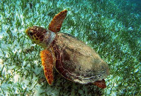 The days passed, our parcel cleared customs and soon was ready for pick up. Changing the module and its configuration was rather quick and Rouletout started on the first turn of the key, next day we were off for Belize City. Belize City is a small town but seems to have a couple of “dark alleys” with drug related crime. We found a place to stay just outside of the city in the garden of Alice, a widow that lives there with her daughters. The water along the coast is shallow and you can go for kilometre long walks in ankle to knee deep water along the mangroves (don’t step on any of the many rays!!). But it was time to do what we came here for and this was visiting the Cayes and snorkelling. Early morning - leaving Rouletout and our doggies at Alice’s place - we took the first ferry to Caye Caulker, a one hour ride over turquoise and dark blue waters to meet with our tour guide.